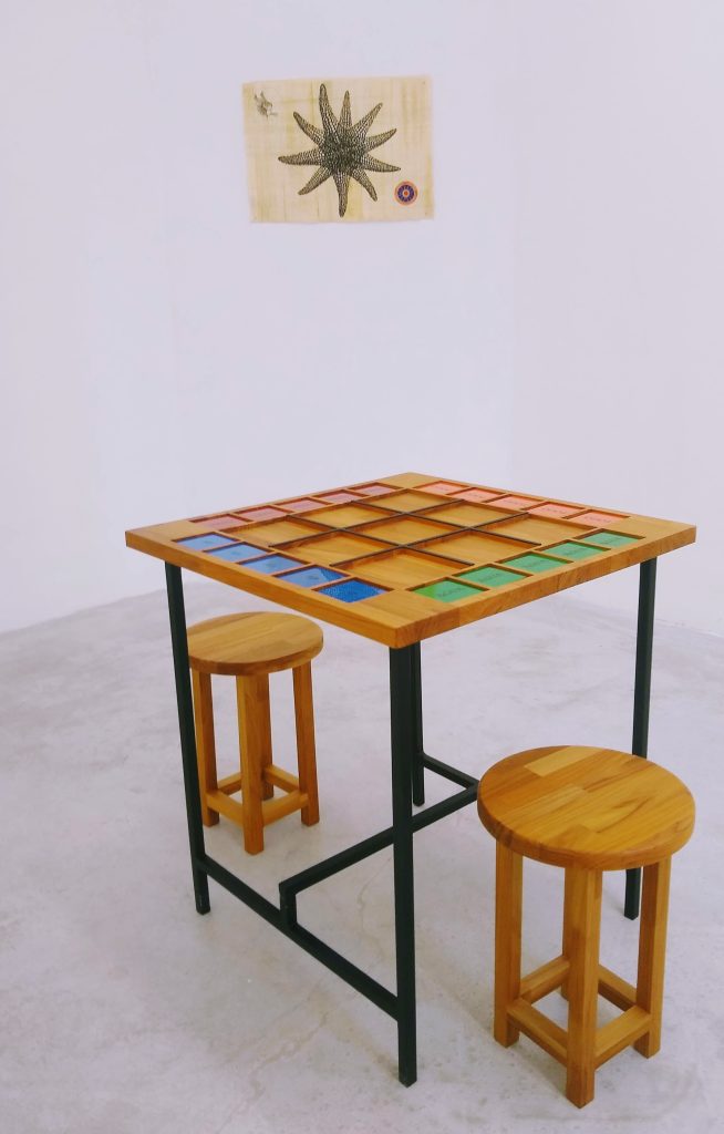 “Amuletos, rituais, ciência e ficção. Tudo é motivo para a pesquisa de Thereza Salazar em seus desdobramentos visuais. Seja através das referências de padronagens gráficas primitivas e naturais ou oriundos de antigas simbologias de poder ou, ainda, em estudos para um ambiente de uma velha ficção científica….Thereza Salazar se interessa por tudo isso, indo atrás dos disparates das formas e os desastres das histórias que chegam do oriente e do ocidente, dos quatro cantos do mundo, para criar seu léxico místico, entre o fantástico e o trivial. Magia e ciência interpretadas com rigor técnico, muitas vezes em preto e branco, algumas outras num colorido vibrante. Em suportes e técnicas distintas, como a reprodução serigráfica ou digital, o bordado têxtil, o desenho e na construção de objetos a artista desenvolve séries para falar de relações e inquietações humanas.”