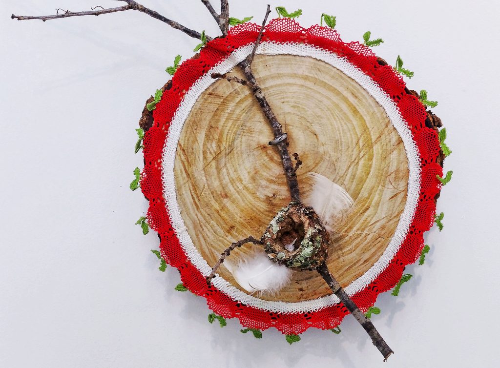 Nas possibilidades de vivenciar outros mundos procuramos encontrar nossos refúgios em meio às referências da vida. Dores, amores, ganhos e perdas vão construindo nossos repertórios emocionais para daí nos fortalecermos enquanto ser humano na condução de nossa produção criativa. Dito isto colocamos em diálogo três artistas mulheres, cada uma com uma história e origem de vida, mas, dada a proposição, parecem estar em sintonia no encontro de suas narrativas visuais. Em suportes variados todas conduzem seu olhar para a natureza, construindo paisagens, recortando e destacando seus elementos para ressignificar e fortalecer simbolicamente o título da mostra. Nas matas, a vitalidade e fertilidade da vida; nos ninhos, a proteção e o cuidado do lar; dos vulcões, a potência contida e explosiva. A natureza como templo divino interpretada de diferentes maneiras e complementares entre si. Do mistério e encanto das folhagens, ao emaranhado dos galhos e a delicadeza dos líquens, a temperatura das lavas e a rigidez e transparência dos cristais. Tudo isso posto em aquarelas, desenhos, recortes, têxteis e apropriações. Fluxos infinitos que as move, entre sentimentos e memórias afetivas cheias de potência. “A própria vida é vontade de potência”, segundo Nietzche. Entre nós há um mundo e entre os mundos há cada um de nós.